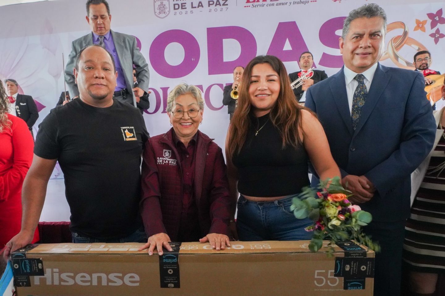 En las Bodas Colectivas 2026 amenizó el mariachi ’Son de mi Tierra’, se partió pastel para todos los contrayentes y para ellos se rifaron pantallas, hornos de microondas y vajillas. También se dio la toma de fotografía de las parejas y los trámites totalmente gratuitos.