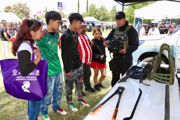 La mandataria subrayó que esta feria forma parte de una estrategia integral de seguridad que incluye la recuperación de espacios públicos, los Operativos Violeta en el transporte, el acercamiento puerta por puerta, y las Ferias de Seguridad, ejes que buscan construir un municipio más seguro y en paz.