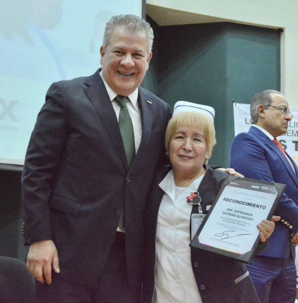 Posteriormente, se entregaron reconocimientos a la Doctora María del Pilar Ruiz Fierro, del Hospital General ’La Perla’ de Nezahualcóyotl, por 39 años de servicio; al Maestro Enrique Medina Bustamante, Subdirector de Recursos Humanos, por 40 años, a Esperanza Iglesias de la Jurisdicción Sanitaria Texcoco por 42 años, a María de Lourdes Edith Castillo Romero, del Hospital Materno Perinatal ’Mónica Pretelini Sáenz’, y José Antonio Cuevas, de la Dirección General del ISEM, por 44 años; al Doctor Carmelo Eleazar Reyes Ángel del Centro Médico ’Lic. Adolfo López Mateos’ por 50 años, y al Doctor Gilberto Bernal Sánchez, Secretario Técnico del Consejo de Salud del Estado de México, por su destacada labor en el sistema de salud estatal.