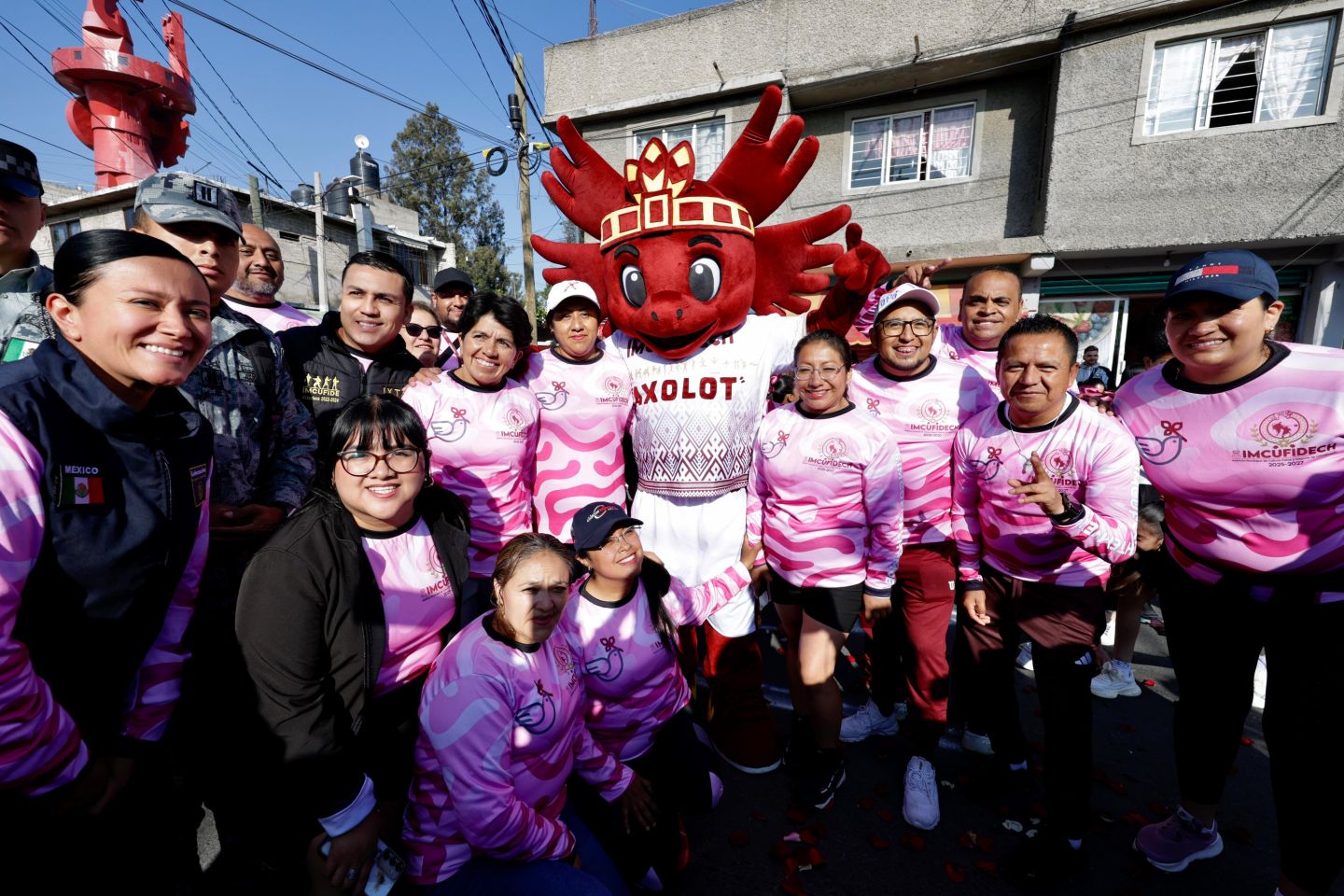 Durante la jornada que inició en el Corredor Turístico Valle del Anáhuac y que arribó al Estadio Tepalcates luego de un recorrido familiar de 9 kilómetros, el IMCUFIDECH presentó a su mascota oficial ’Axolot’, una botarga de ajolote que se encargará de difundir los valores del instituto en todo el territorio.