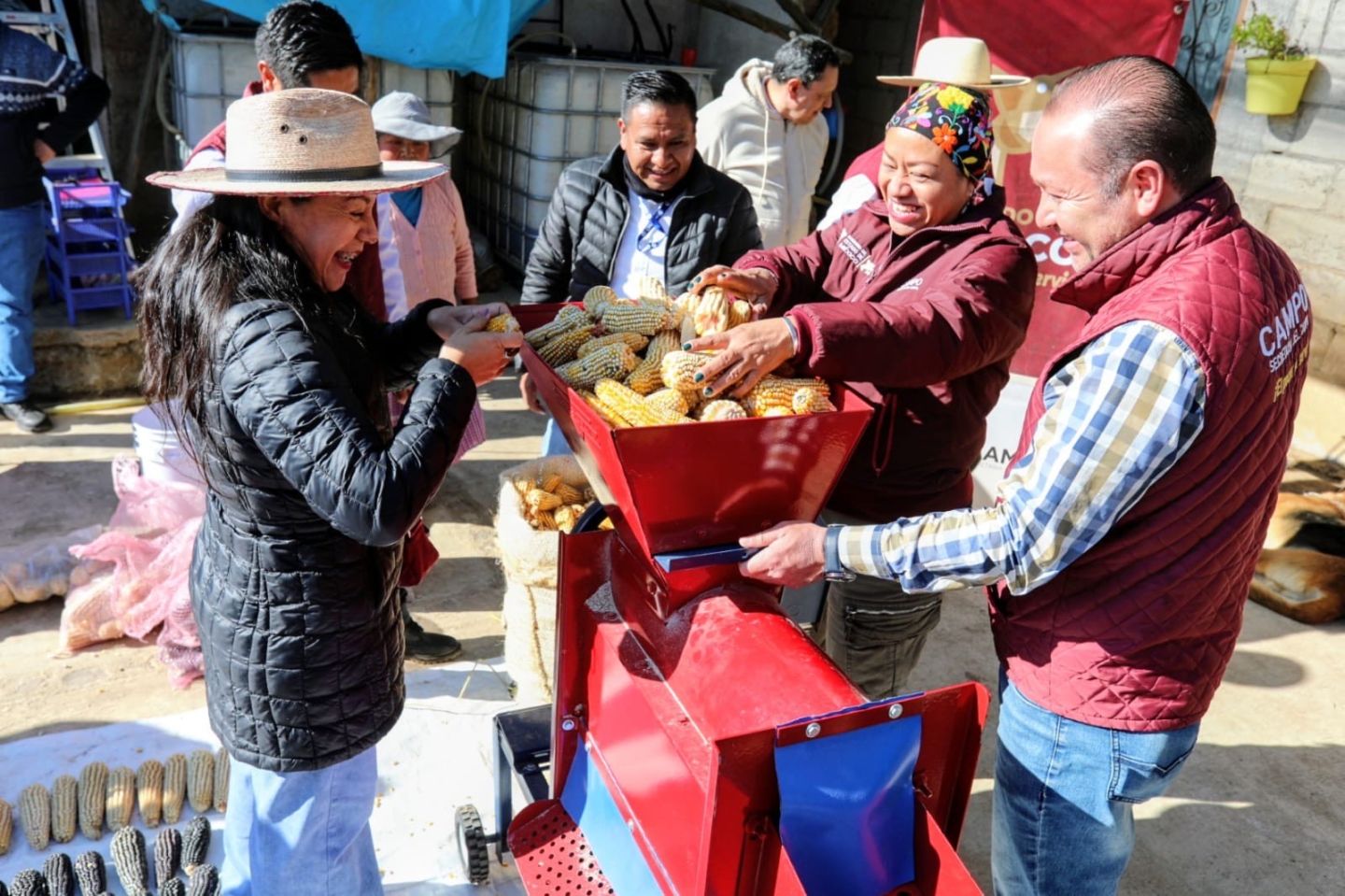 Los productores fueron beneficiados con una desgranadora del programa estatal Rescate del Campo, que impulsa la eficiencia productiva, la sostenibilidad y la seguridad alimentaria a través de apoyos directos, asistencia técnica y capacitación. A su vez, participan en los programas federales Escuelas del Campo y Cosechando Soberanía, enfocados en la producción agroecológica y el fortalecimiento del campo.