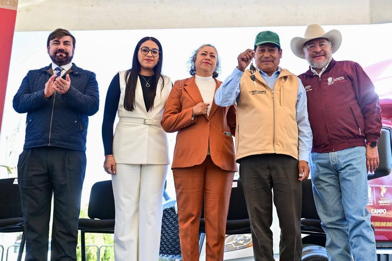 Metepec, Estado de México., 25 de febrero de 2026.– El Gobierno de Delfina Gómez Álvarez, puso a disposición de los ayuntamientos con población dedicada a la producción agrícola, ’Maquinaria para Transformar el Campo Mexiquense’; se trata de 12 nuevas unidades y vehículos pesados para la realización de obras de infraestructura, orientadas a atender las necesidades en materia de tecnificación y uso eficiente del agua.