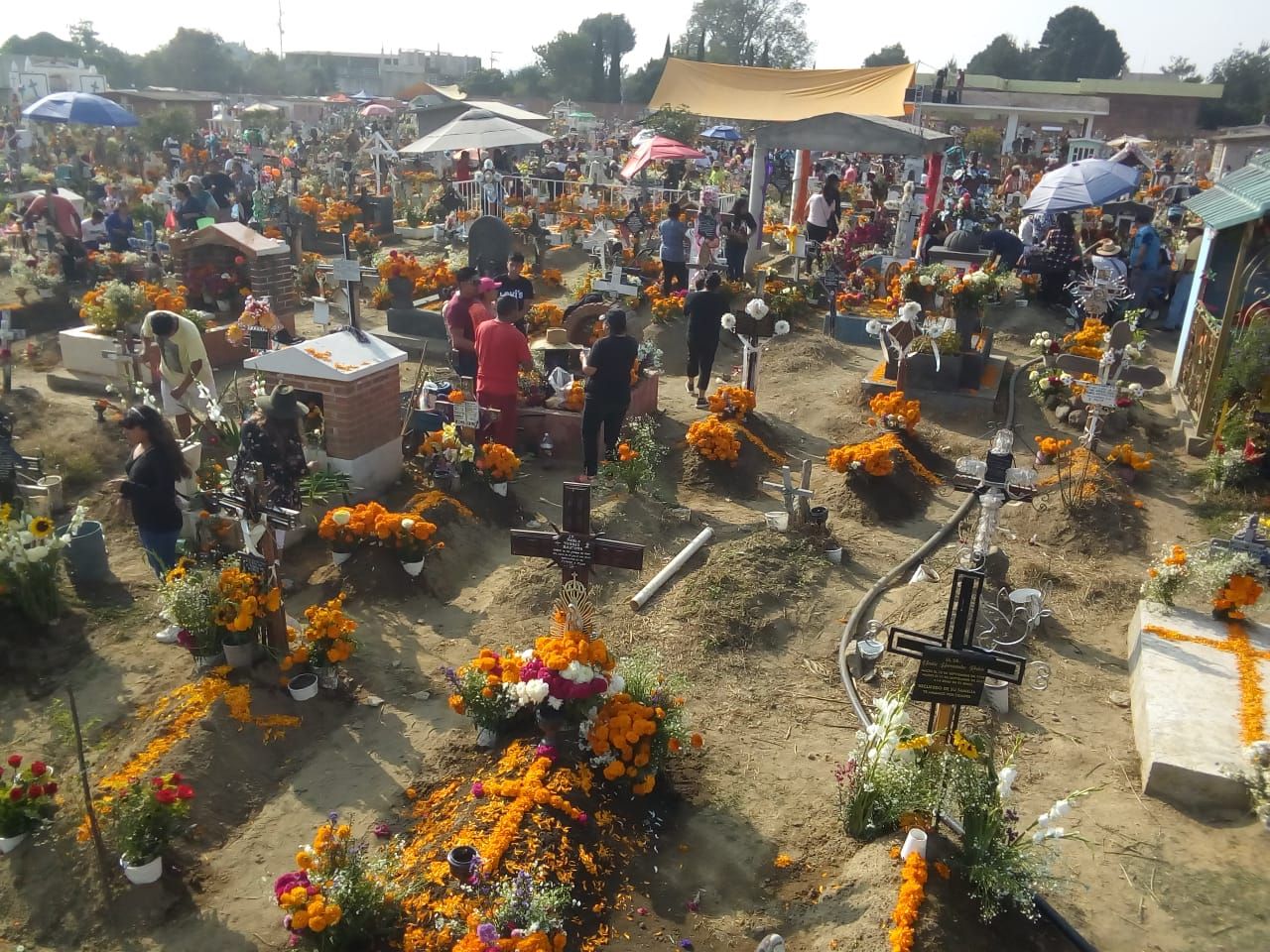 Las direcciones de Agua Potable, Servicios Públicos, Seguridad Pública y Protección Civil, estuvieron al pendiente del desarrollo pleno en los panteones, donde se visualizó un aspecto alegre en las tumbas donde lucieron flores como nube, gladiola, terciopelo, además de las infaltables flores de cempasúchil.