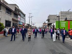 * El alcalde de Atlautla encabezó el desfile por el 112 aniversario de la Revolución Mexicana. * Acompañado por los integrantes del Ayuntamiento, alumnos, maestros, padres de familia y de la administración pública municipal.