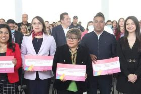 • Invita Gobernador a que las beneficiarias se realicen una mastografía gratuita. • Reciben más de 5 mil mujeres de Ecatepec de Morelos, Acolman, Axapusco, Chiautla, Otumba, Papalotla, San Martín de las Pirámides, Tecámac, Temascalapa, Teotihuacán y Tepetlaoxtoc, tarjetas de Salario rosa.