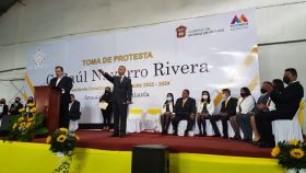 * Exhortó a los regidores de otras expresiones políticas a sumar esfuerzos y contribuir para que este municipio crezca. Destacó que su gobierno se regirá por seis ejes rectores que son: Agua Potable, Salud, Seguridad Pública, Campo, Educación y Empleo.