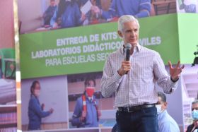 * Entrega Del Mazo Maza la rehabilitación de la Secundaria Técnica No. 24 ’Ing. Víctor Bravo Ahuja", en Tlalnepantla,