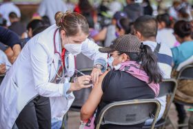 * El presidente municipal, Jesús Tolentino Román Bojórquez, destacó que, hasta el momento, más del 35 por ciento de los chimalhuacanos han completado su esquema de vacunación.