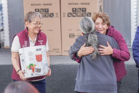 • La Mandataria mexiquense entregó 5 mil 100 kits que incluyen dos colchones, una base matrimonial, estufa, refrigerador y licuadora.