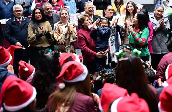 Toluca, Estado de México., 18 de diciembre de 2025.- La Gobernadora Delfina Gómez Álvarez y miembros de su Gabinete alegraron la Navidad de niñas, niños y adolescentes resguardados en los Centros de Asistencia Social del DIFEM, a quienes entregaron juguetes y aguinaldos, acompañados de muestras de amor y cariño.